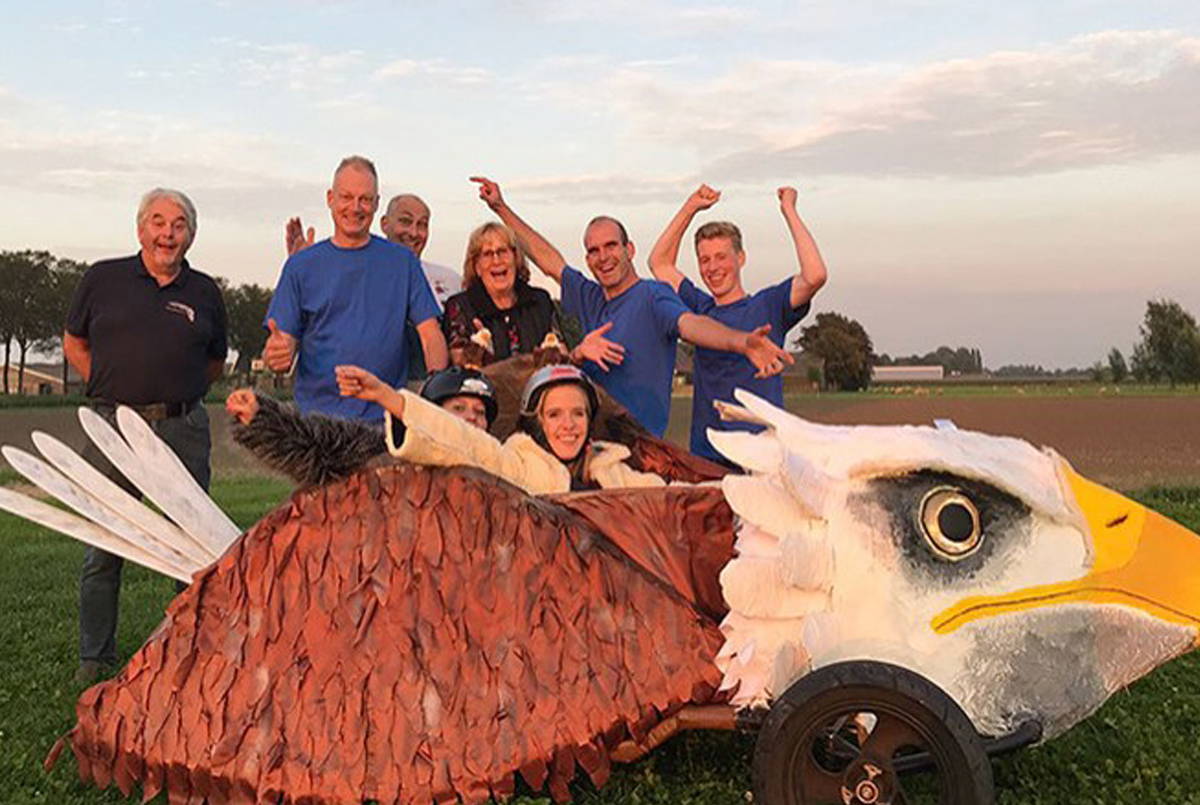 Wie in Middenbeemster woont heeft ze mogelijk al voorbij zien sjezen. Famke van Laar (17) en Melissa Kemper (21) nemen zaterdag namens de Roofvogelopvang deel aan de Red Bull Zeepkistenrace in Limburg. In de vorm van een Amerikaanse zeearend zullen zij van de Valkenburgse Cauberg “vliegen”.