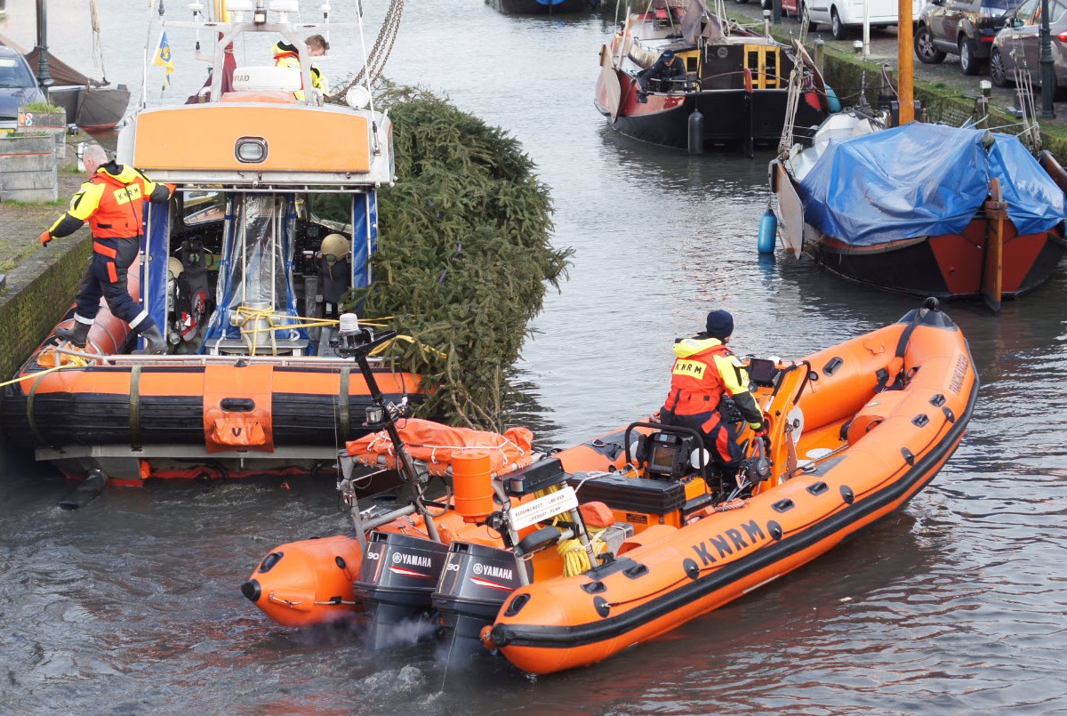 Inkomend voorzitter Dirk Jan van Geemen is ook actief bij KNRM station Marken en daar konden ze een beetje extra warmte in de wintermaanden wel gebruiken. Het station aan de haven van Marken wordt warm gestookt door middel van een houtkachel en dus werd door de club besloten de boom dit jaar te doneren aan de KNRM.