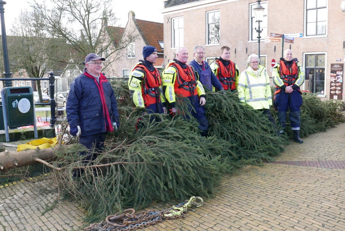 Vrijdag 10 januari was het zover. Door Ronday BV, Leguit + Roos en G.C. Verweij Machineverhuur werd de boom ontdaan van alle verlichting en franje. Vervolgens was Van Geemen aan de beurt om de boom uit zijn frame te hijsen. Het was een perfecte samenwerking van Waterlandse bedrijven die zich belangeloos inzetten voor het goede doel. In de verte kwamen de schepen van KNRM station Marken al aan gevaren.