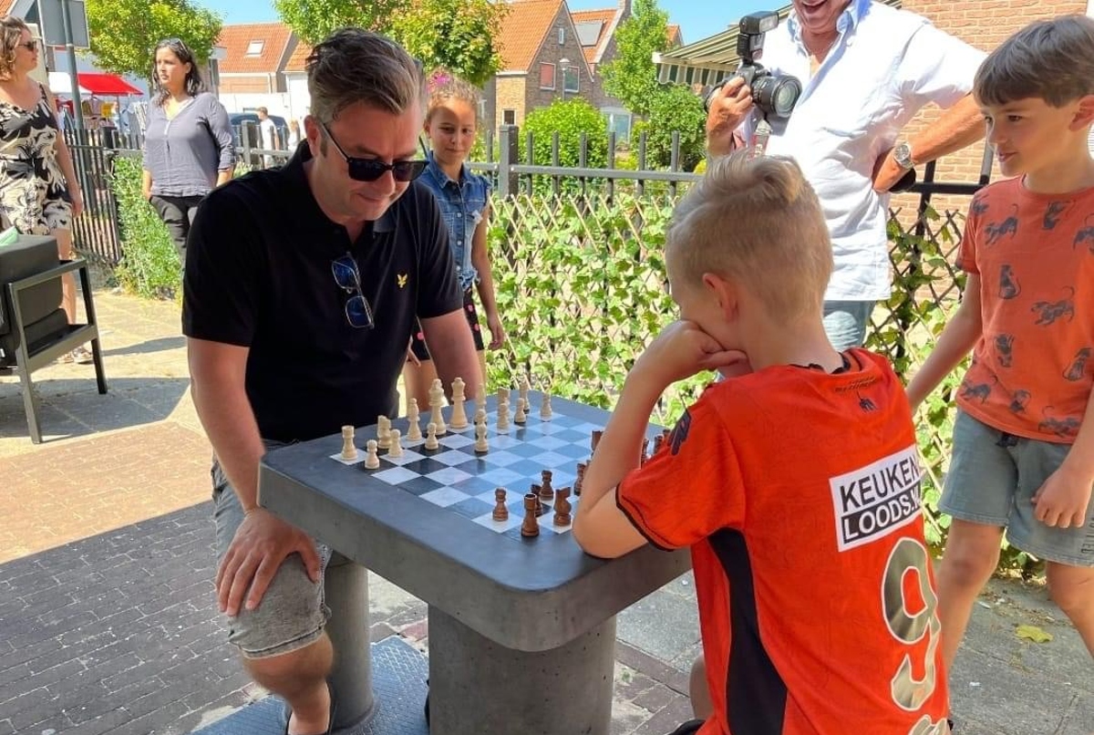 Volendam – Afgelopen zondag tijdens Volendammerdag heeft wethouder Vincent Tuijp de schaaktafel voor het PX gebouw officieel in gebruik genomen! In samenwerking met schaakclub Volendam is de openlucht schaaktafel tot stand gekomen.