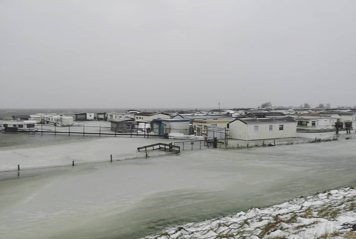 Vooral in het lage gedeelte van de camping, waar rond de twintig caravans staan, is het bar en boos. Het water is daar de binnenplaatsen tussen de caravans op gestroomd en bevroren. Het is er een grote ijsbaan, ook binnen in sommige caravans. De echte schade kan pas goed opgemaakt worden als straks de dooi is ingezet en het is nog maar de vraag of de verzekering de kosten (volledig) dekt.