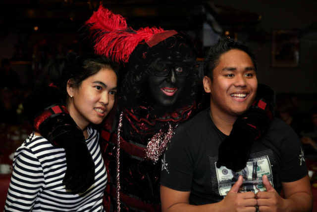 De gezellige middag vond plaats in de AMVO en het was één groot feest. Er werd geklapt voor de kunsten van de pieten, er werd geposeerd op het ‘paard’ van Sinterklaas en er werd veel gelachen en gedanst.