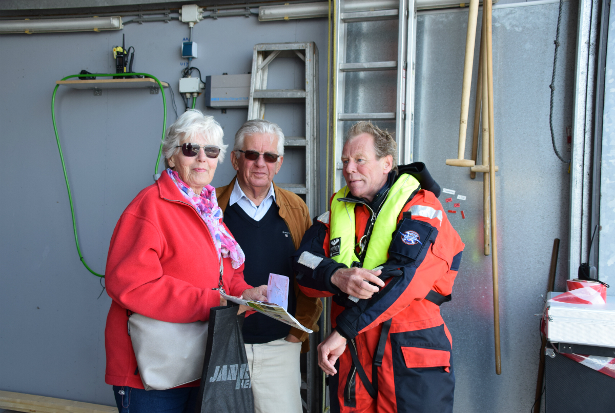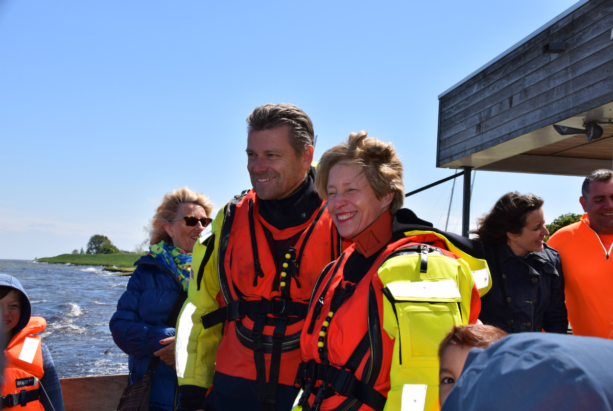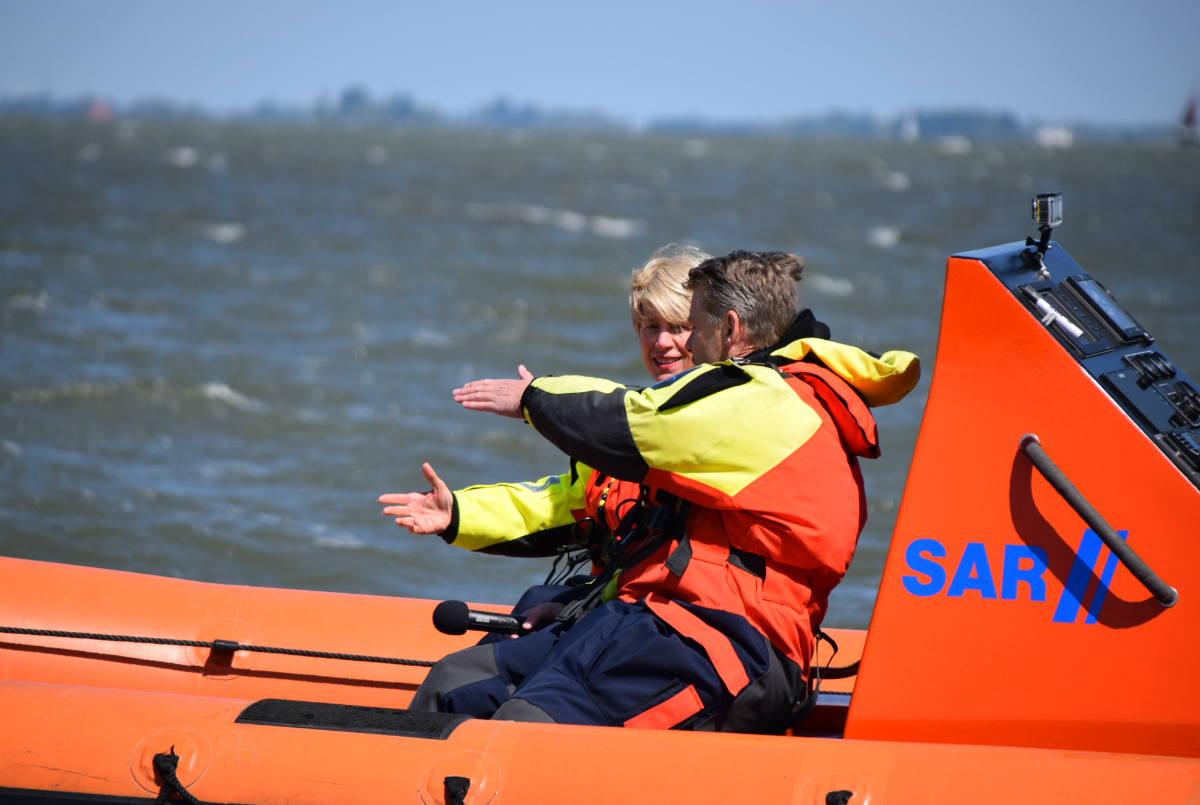 Nadat de nieuwe dienstverleningsovereenkomst (DVO) tussen gemeente en reddingsstation met een handtekening was bekrachtigd, werd de burgemeester in een heus reddingswerkerspak gehesen. Geheel in stijl stapte ze aan boord van een van de reddingsboten waar een zogeheten flair stick afgestoken werd, wat zowel aan boord als aan wal luid applaus opleverde.