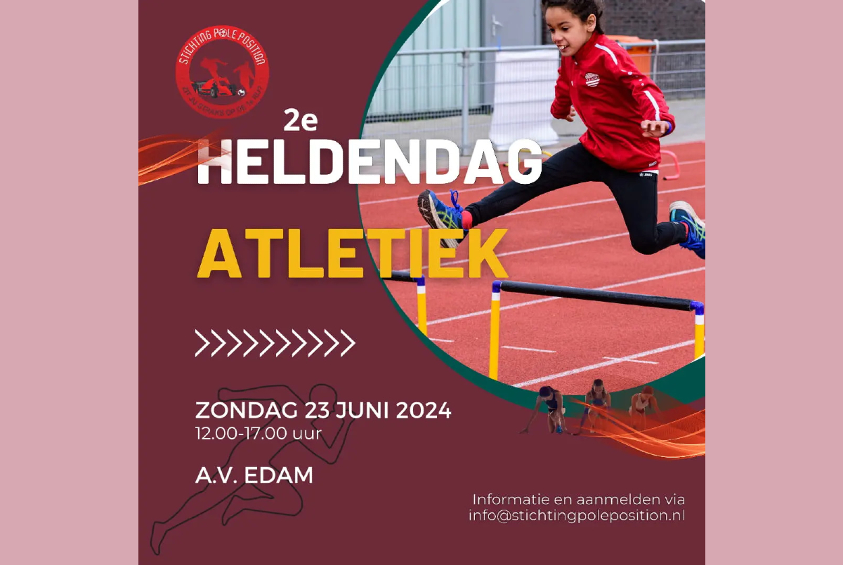 Op zondag 23 juni 2024 organiseert Stichting Pole Position bij A.V. Edam een Heldendag met het thema atletiek. Van 12.00 tot 17.00 uur krijgen mensen met een verstandelijke beperking de gelegenheid om met elkaar te sporten en bewegen. Tijdens de Heldendag is o.a. ex-topsporter en Nederlands recordhoudster Polsstokhoogspringen Femke Pluim aanwezig.