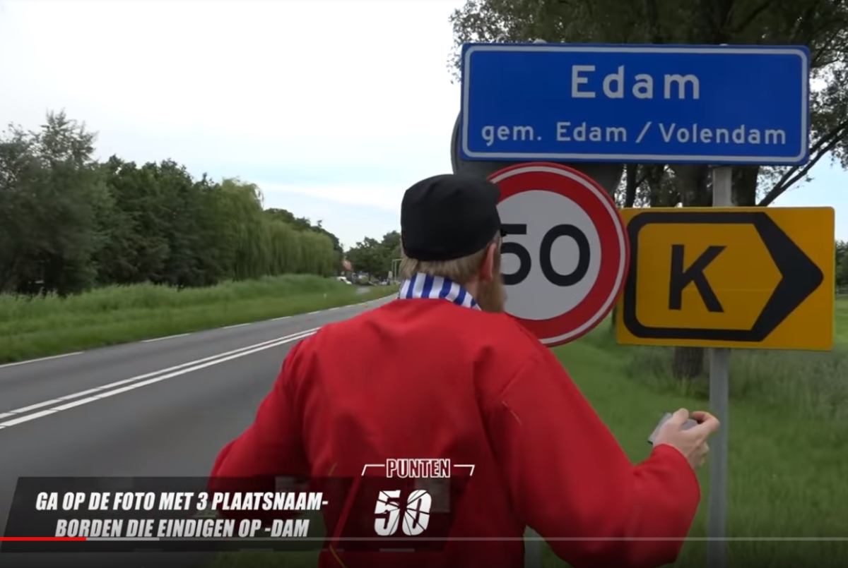 Remde er onlangs iemand af op de N247 om vervolgens de auto in de berm te zetten, uit te stappen en in klederdracht een selfie te maken bij het bord Edam…….