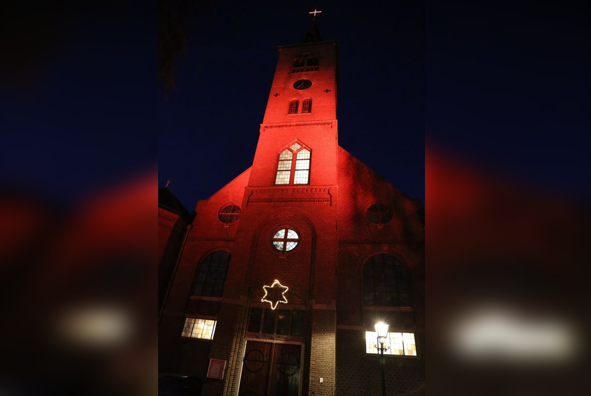 Volendam – Vandaag kleurt de toren van de Vincentiuskerk dubbel rood! Vanaf dat Sint Nicolaas zijn intrek in de toren heeft genomen kleurt de toren al rood, maar vandaag is er een extra reden; wereldwijd kleuren veel kerktorens rood om aandacht te vragen voor alle christenen die wereldwijd op allerlei manieren in allerlei landen vervolgd worden.