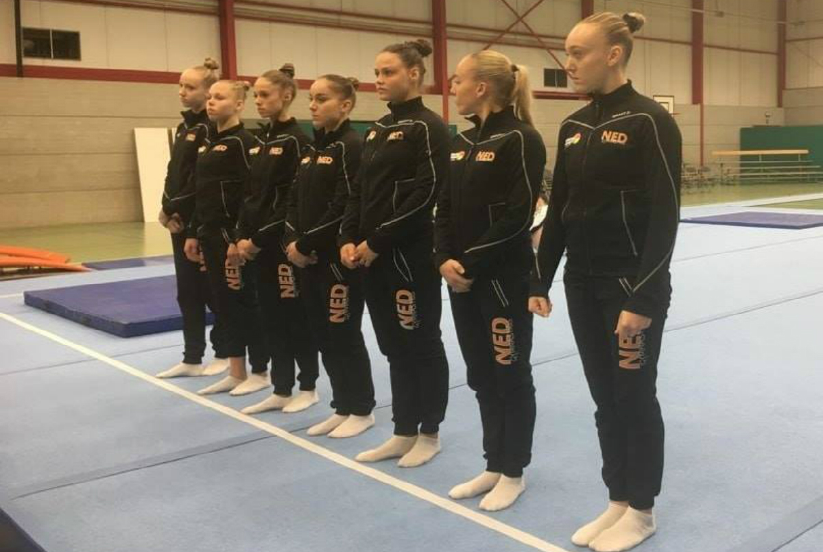De in Amsterdam turnende Vera van Pol en Sanna Veerman, Kirsten Polderman van PAX Haarlemmermeer, Naomi Visser en Tisha Volleman eindigden met een puntentotaal van 157,25 punten achter België (162,200), maar vóór Roemenië (151,250).