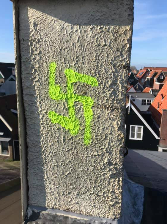 Afgelopen avond zijn er bij verenigingsgebouw De Jozef en de Jozefschool in Volendam vernielingen aangericht. Er is o.a. met spuitbus een hakenkruis op het gebouw gespoten en een pallet op het dak gegooid.