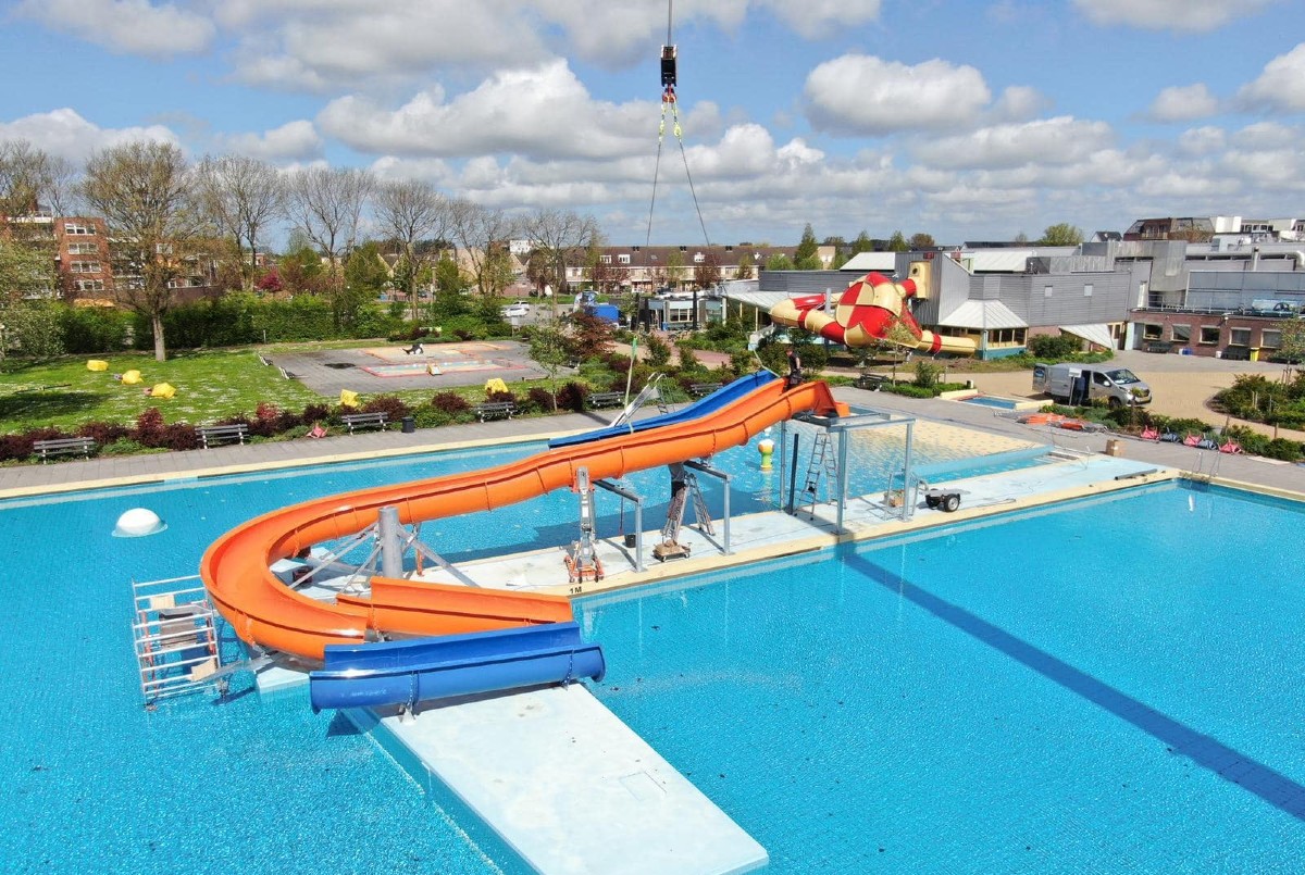 Door het slechte weer van de afgelopen tijd heeft het vervangen van de buitenglijbaan bij zwembad De Waterdam in Volendam vertraging opgelopen. Voor de laatste werkzaamheden is droog weer nodig.