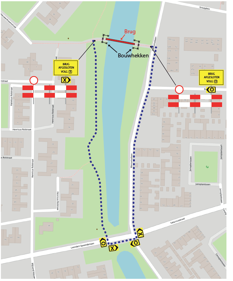 In de week van 25 februari t/m 3 maart worden de voorbereidende werkzaamheden uitgevoerd voor de realisatie van de nieuwe brug. Hierbij kunt u o.a. denken aan het loskoppelen van de lantaarnpaal t.b.v. de plaatsing van de brug.