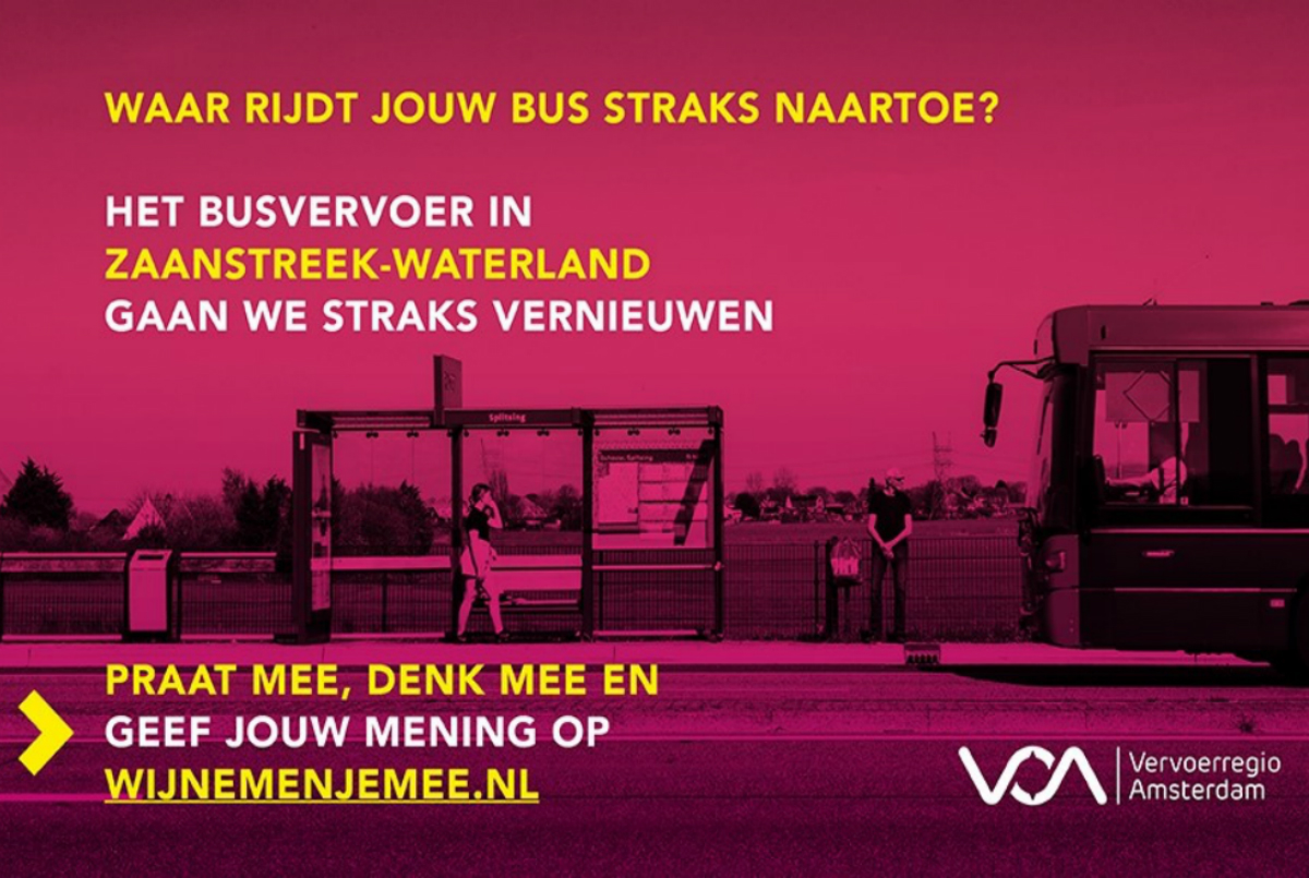 De OV-concessies voor het openbare busvervoer in Zaanstreek en Waterland lopen in december 2021 af. De Vervoerregio organiseert een aanbesteding van de nieuwe, gezamenlijke concessie voor dit gebied. De eerste stap is het opstellen van een programma van eisen. Reizigers en inwoners van deze regio worden hierbij betrokken en kunnen vanaf vandaag hun mening geven via een digitale enquête op wijnemenjemee.nl