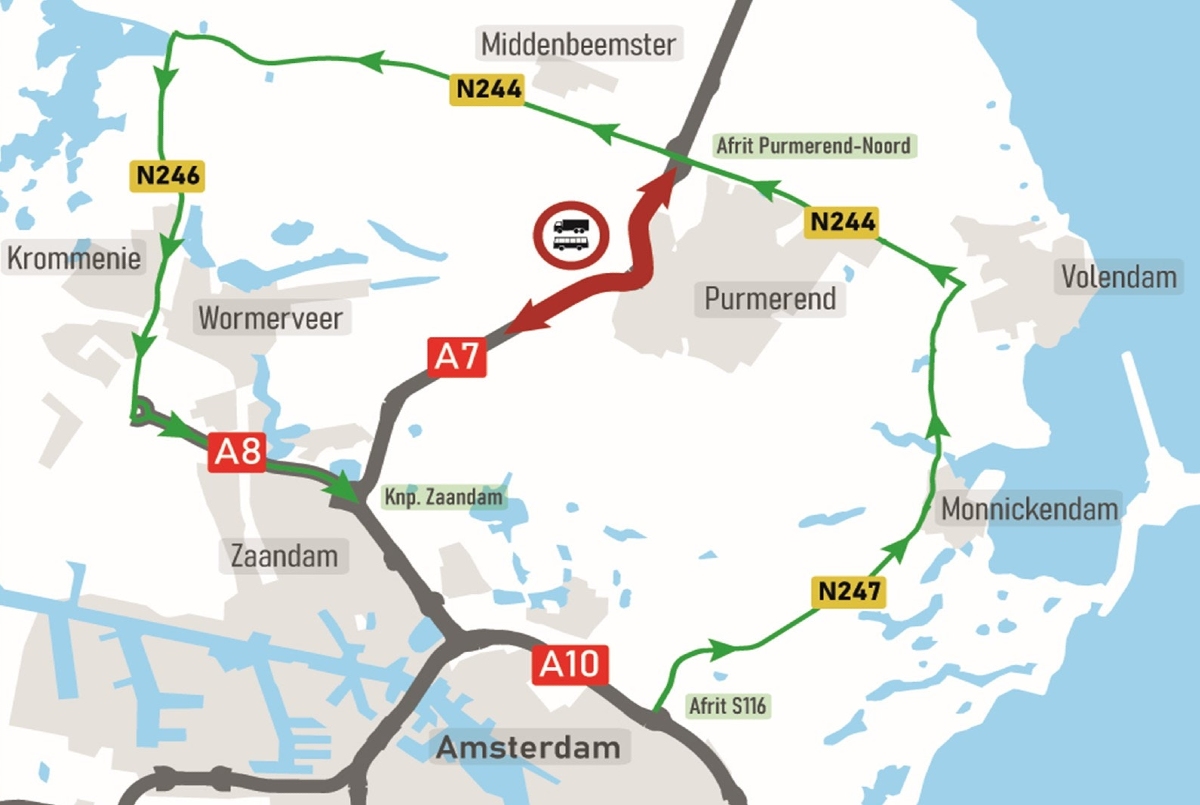 Purmerend – Rijkswaterstaat (RWS) houdt er rekening mee dat het nog zeker anderhalf jaar gaat duren voor het viaduct over het Noord-Hollands kanaal bij Purmerend aangepakt wordt. Het viaduct van de A7 over het Noordhollands Kanaal bij Purmerend heeft al sinds oktober 2022 een gewichtsbeperking. Het zou anders niet goed gaan als er zwaar verkeer over blijft rijden.