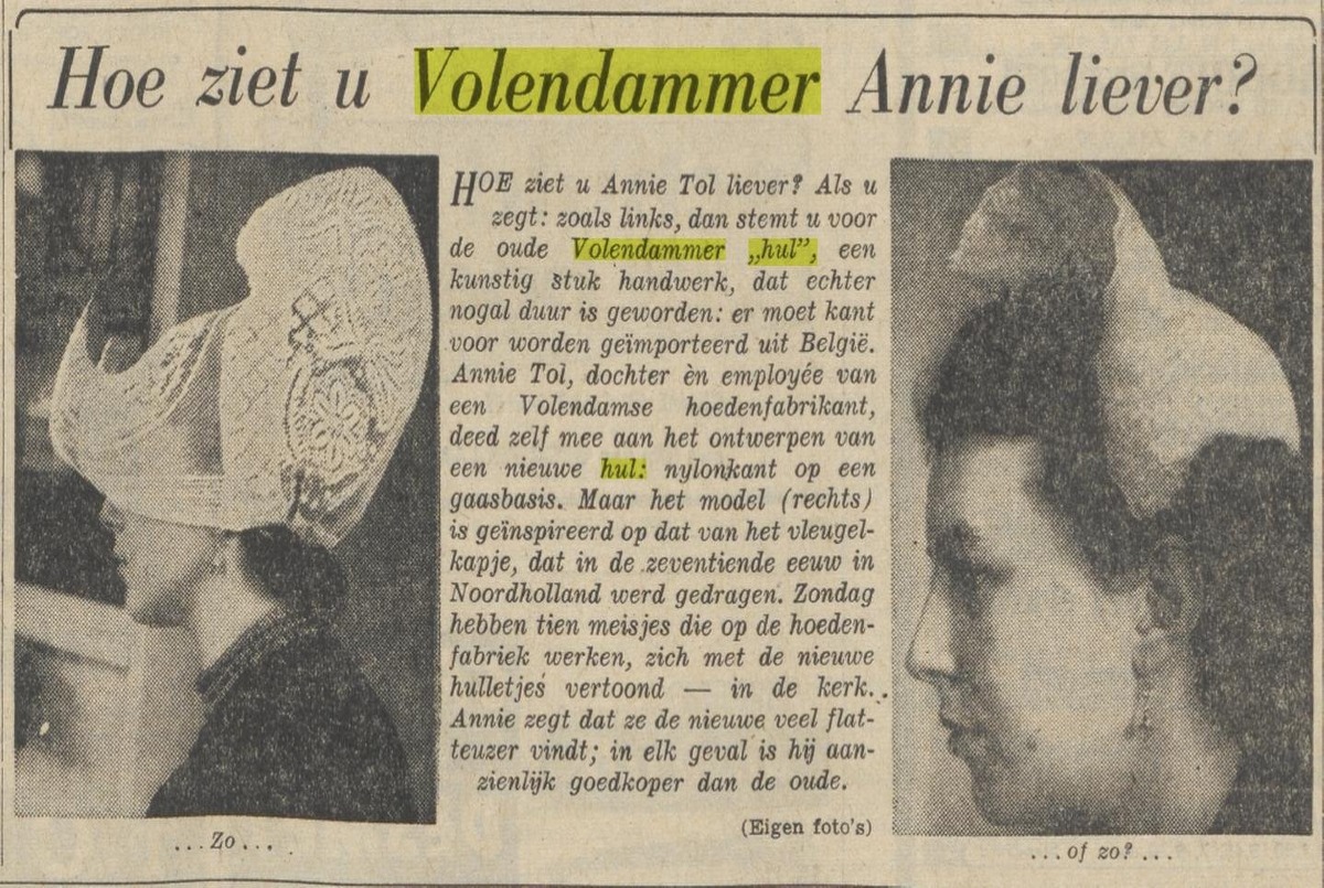 Volendam – Vorige week kwamen er op social media regelmatig foto’s voorbij van ‘de moderne versie van de Volendammer Hul’. Het Volendams museum zou heel graag zo’n ‘hul’ in haar collectie hebben. Wie kan het museum hieraan helpen??