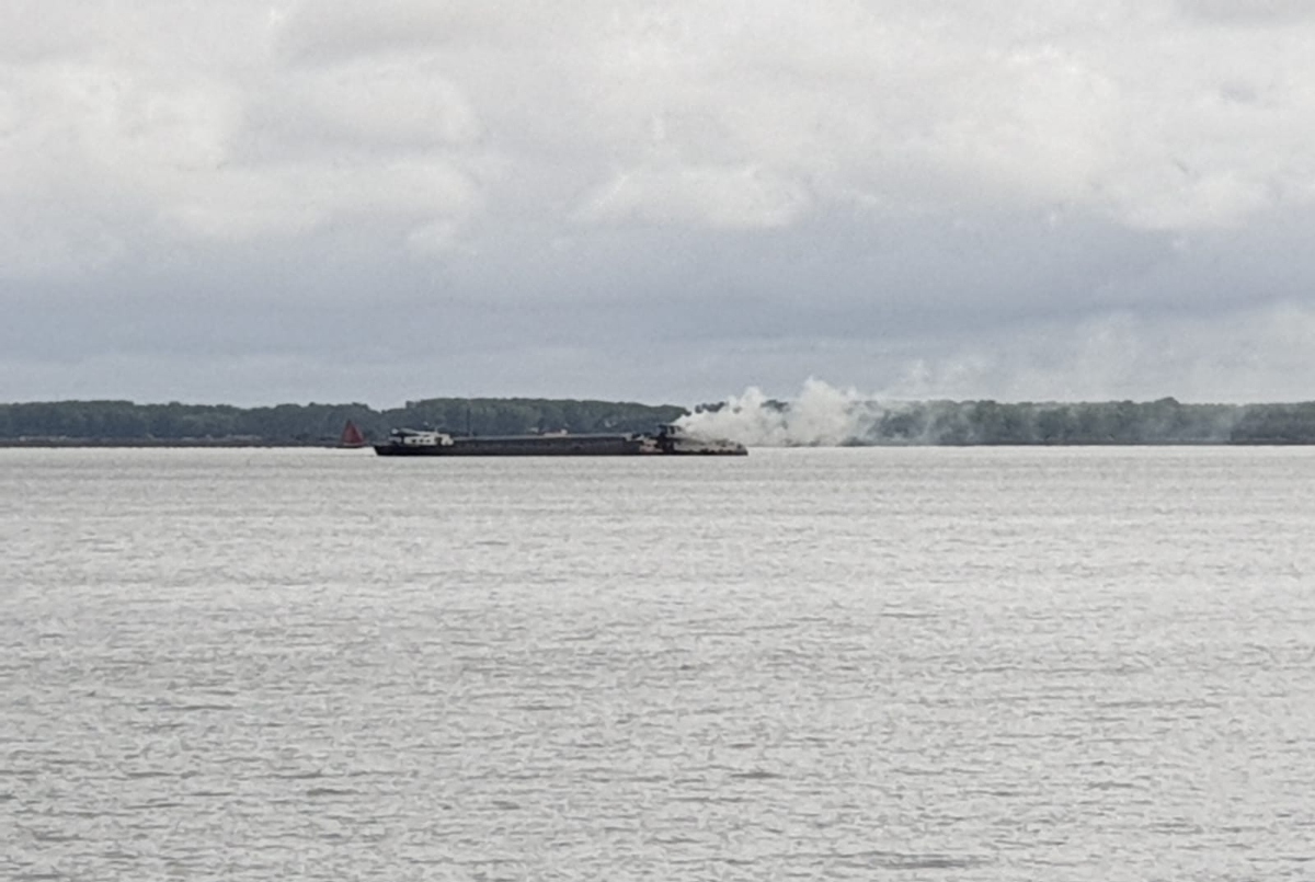Op het Markermeer bij Uitdam is vanmiddag een vrachtschip dat graan vervoerde in brand gevlogen. De brand was ontstaan in de machinekamer.