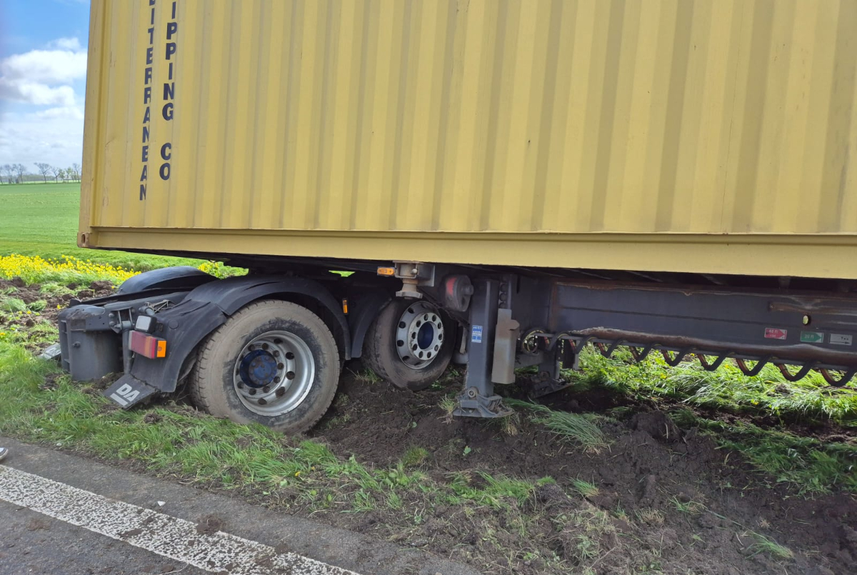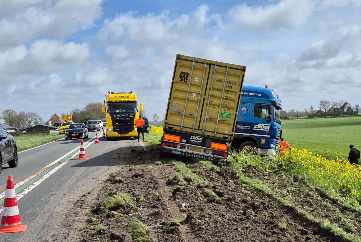 De vrachtwagen was met de rechterwielen vast komen te zitten in de berm en kwam daar met geen mogelijkheid meer uit. Berger Hoogwout moest er aan te pas komen om het voertuig er met een telekraan uit te tillen. Hiervoor moest de weg in beide richtingen worden afgesloten.
