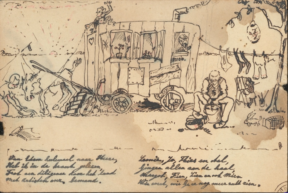 Een unieke vondst, want de collectie bevat naast diverse voorstellingen van het leven in Edam en haar omgeving ook portrettekeningen waarop de Banders zelf zijn afgebeeld en een leuke briefkaart van een reisje van Edam naar Heeze met vrienden.