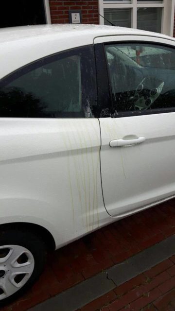 Dit is het afgelopen jaar al meerdere keren voorgekomen. Tevens is er een keer lijm over een auto gegooid. Net zoals bij de voorgaande keren is er aangifte gedaan bij de politie.