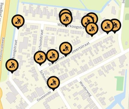 Tijdens de werkzaamheden in de Schoolstraat en de Westerkoogstraat is de weg voor de helft afgesloten. Hierdoor kan er wat vertraging ontstaan.