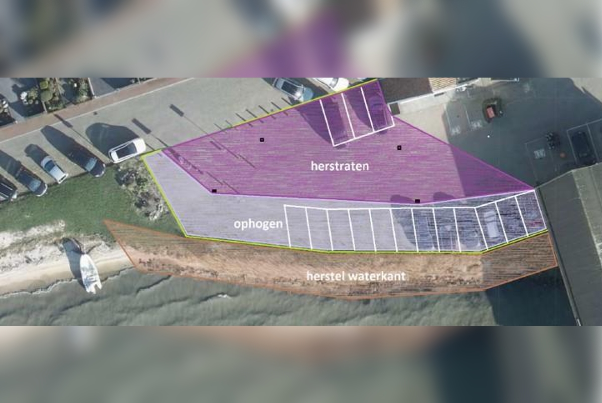 De waterkant zal worden opgeschoond en op hoogte gebracht. Daarnaast wordt de waterlijn bekleed met matten en breuksteen. Tot slot wordt de bestrating van de parkeerplaats hersteld.