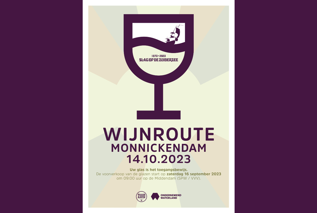 Monnickendam – Ook dit jaar organiseert Ondernemend Waterland weer een Wijnroute door de binnenstad van Monnickendam. Voor deze wijnroute is een uniek wijnglas, dat speciaal voor de route van 2023 vervaardigd is, het toegangsbewijs. De glasverkoop is op zaterdag 16 september van 9.00 – 11.00 uur aan de Middendam in Monnickendam.