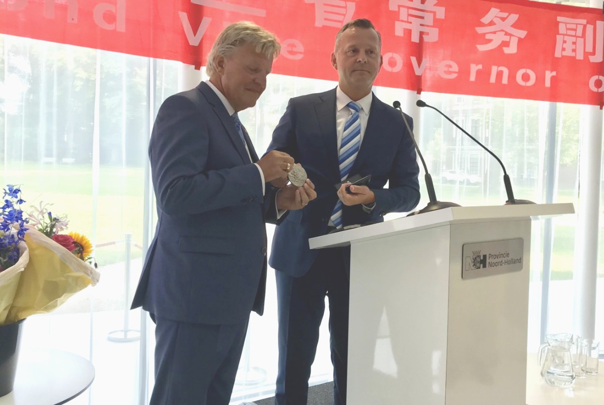 Ex-gedeputeerde Jaap Bond heeft de zilveren provinciepenning ontvangen. Bij zijn afscheid gisteren kreeg de Volendammer de onderscheiding uit handen van Commissaris van de Koning Arthur van Dijk.