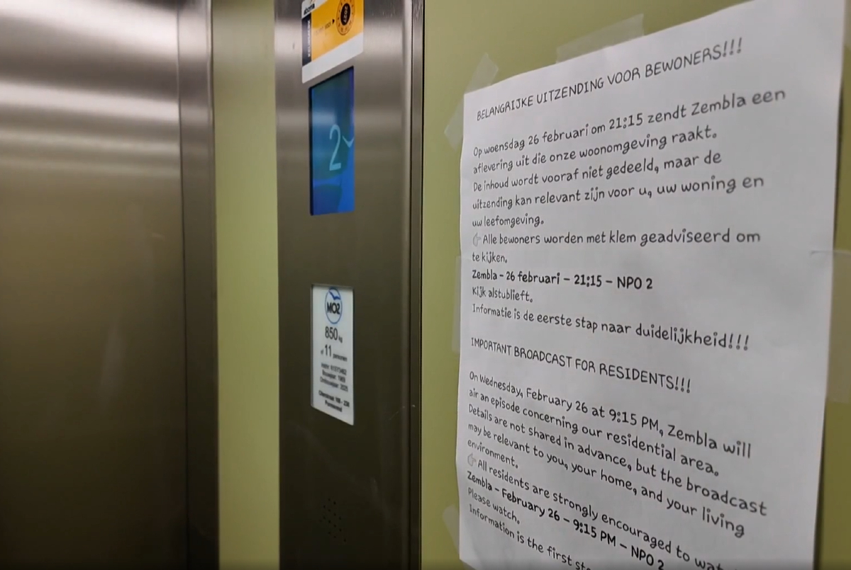 Met briefjes in de hal en in de lift waarschuwen bewoners van de flat aan de Citerstraat in Purmerend elkaar voor veel te hoge concentraties formaldehyde. De bewoners roepen elkaar op naar het programma Zembla te kijken, dat het gebruik van het giftige UF-schuim tijdens de renovatie van de flat aan het licht bracht.