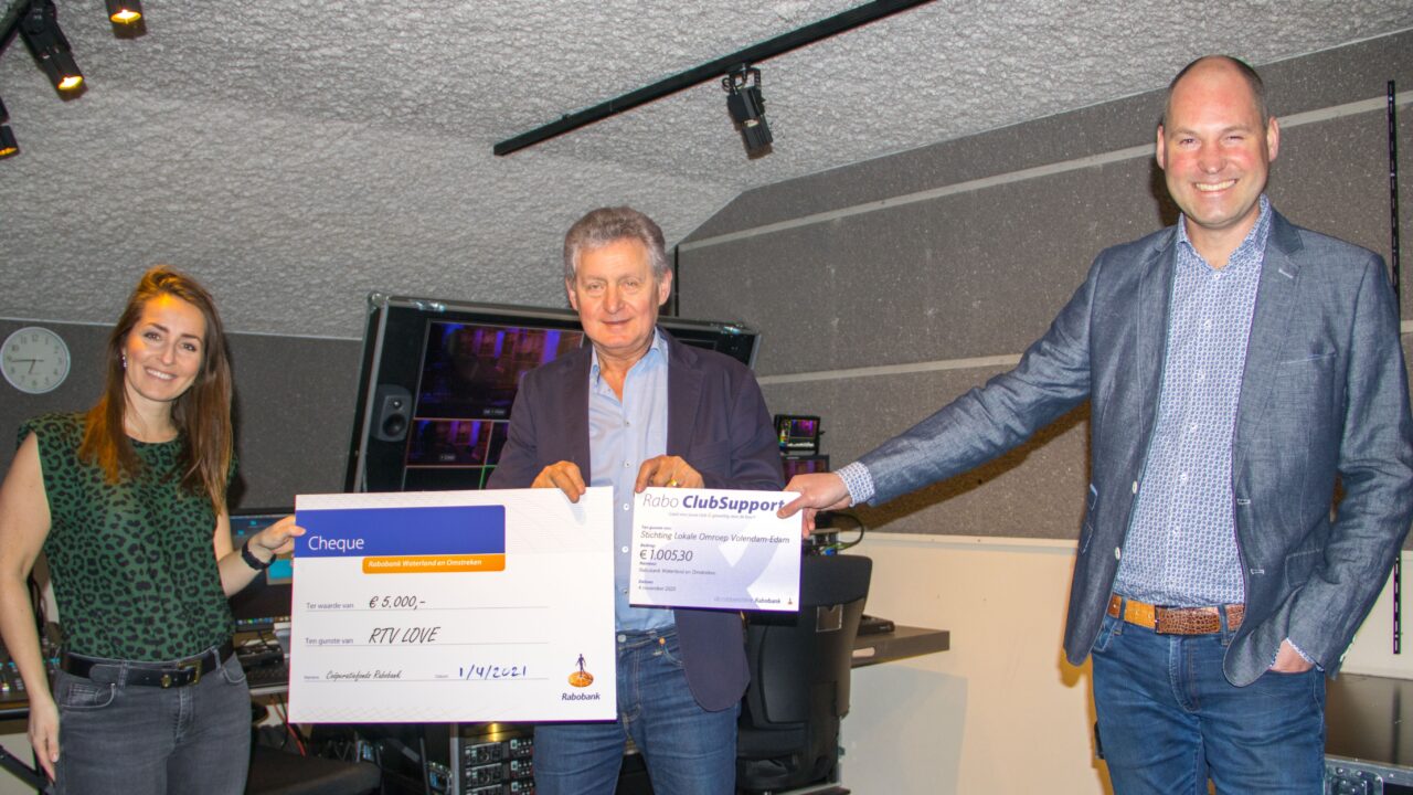 Maar vanuit de Rabobank Waterland e.o. kwam daar nog een cheque bij van 5000 euro bij. De bank vindt het belangrijk dat een deel van haar winst ten goede komt aan de de lokale gemeenschap. Middels het zogeheten Coörporatiefonds ondersteunt Rabobank Waterland e.o. initiatieven die het maatschappelijk of culturele leven in de regio verbeteren. De commissie achter het fonds, bestaande uit inwoners van onze regio, beoordeelde dat RTV L.O.V.E. hier een grote bijdrage aan levert.