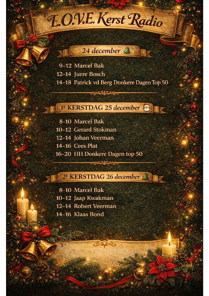 Ook tijdens de kerstdagen stem je natuurlijk af op je lokale radiozender! Op 24, 25 en 26 december zitten onze dj’s klaar om de kerstsklanken uw speakers uit te knallen.