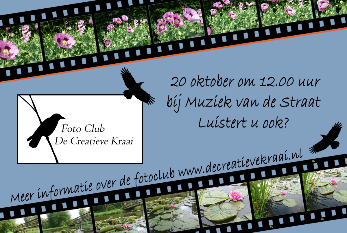 Zondag 20 oktober is Carin om 12.00 uur te gast in het radioprogramma Muziek van de Straat om te praten over de nieuwe fotoclub in onze gemeente.
