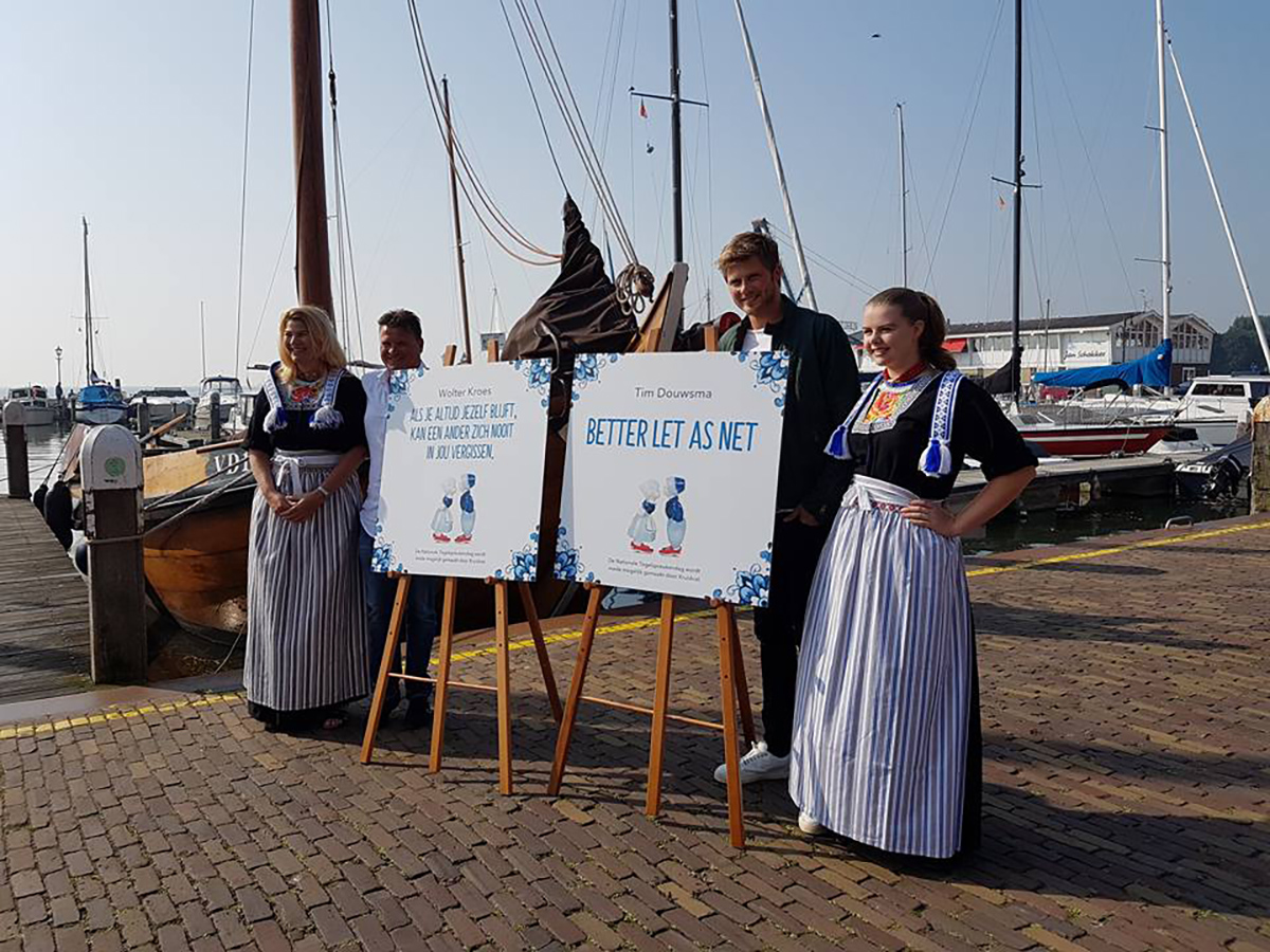 Op 29 augustus jl. werd de eerste Nationale Tegelspreukendag gelanceerd op de Dijk in Volendam. Ter gelegenheid hiervan onthulden Wolter Kroes en Tim Douwsma hun eigen tegelspreuk.