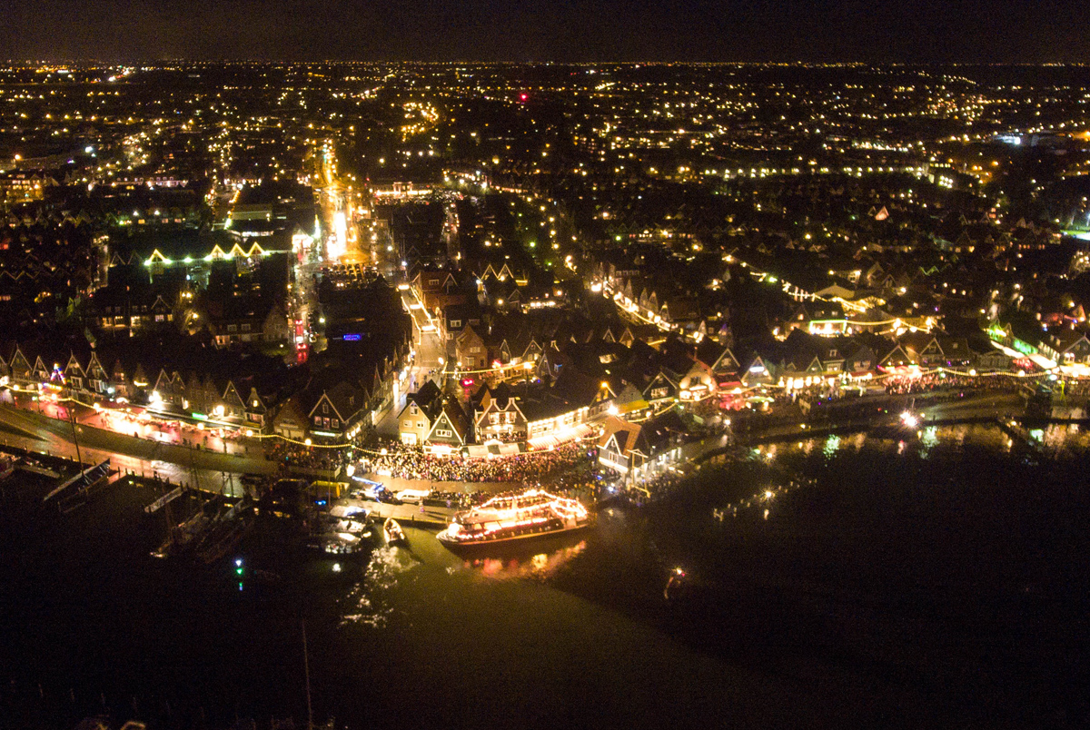 Zondag 19 november kwam de pakjesboot aan in de Haven van Volendam. Voor de Sint voet aan wal zette, kon het publiek op de Dijk eerst genieten van een prachtige vuurwerkshow.