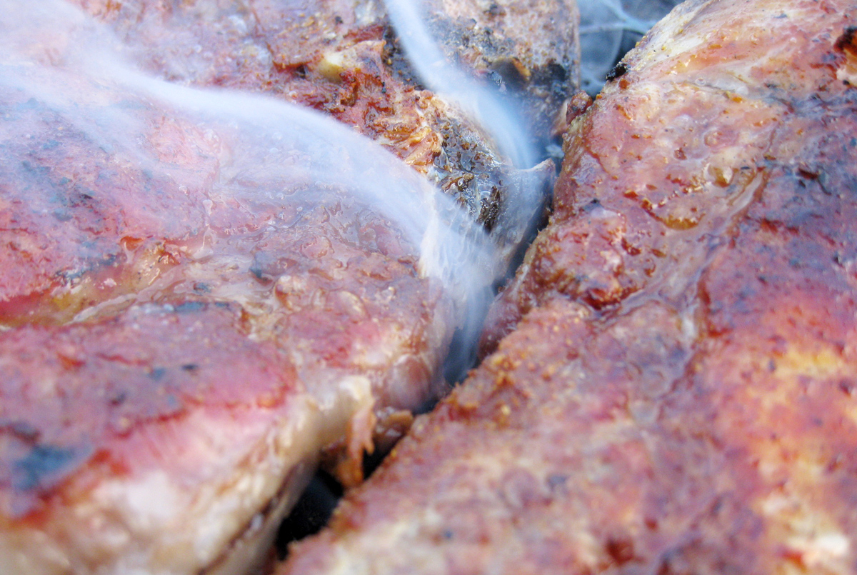 Zout en peper de karbonade van te voren. Verwarm een grote pan met de olijfolie en roomboter. Schroei hierin de karbonades dicht en schep er de sjalotjes, knoflook, tijm en bruine suiker bij. Zet het gas iets lager en braad in nog ongeveer 5 extra minuten de karbonades mooi gaar. Laat ze nog 3 minuten rusten met wat aluminiumfolie er over. Serveer met een tomatensaus en wat krokant gebakken ciabattabrood.