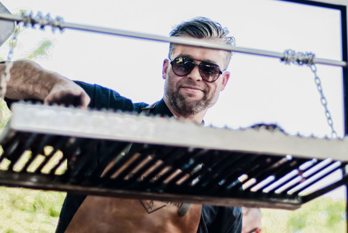 Verdeel de sla over 4 borden. Spuit of schep hier de tuinkruidendressing overheen. Doe er vervolgens de croutons en balsamico op. Leg hier overheen de plakjes dun gesneden gerookte kip met daarover de chilisaus en de pijnboompitten.